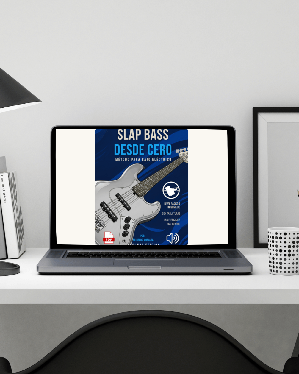 🎧 Incluye: ✔ 165 ejercicios ✔ 165 audios de referencia ✔ 10 loops de batería ✔ Tablaturas y notación estándar ✔ Formato PDF